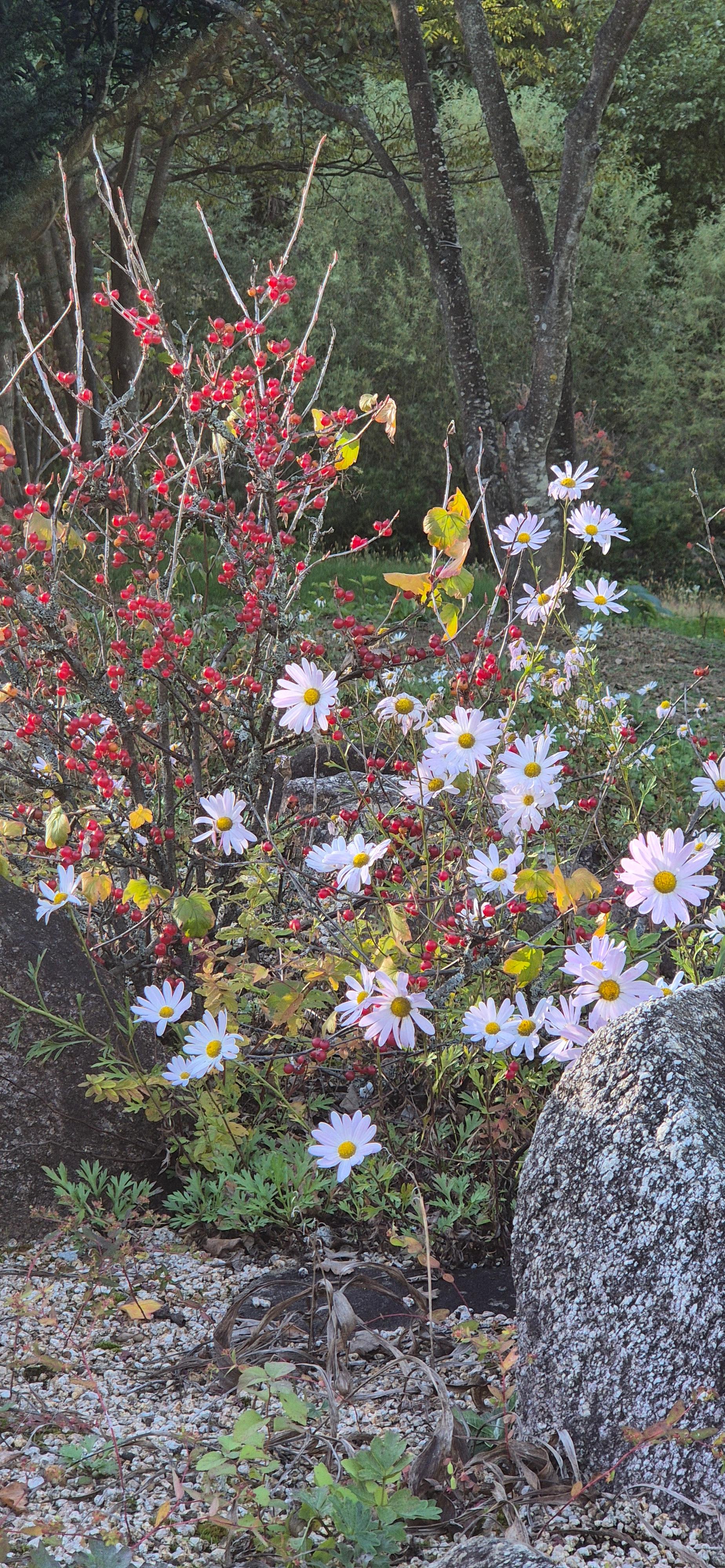 여름철보다 훨씬 줄어든 일조량 속에 피어난 꽃들은 최대한 벌 나비를 유인하기 위해 경렬한 색으로 승부수를 띄우는지 화려함의 극치를 보여주는 듯 싶다.