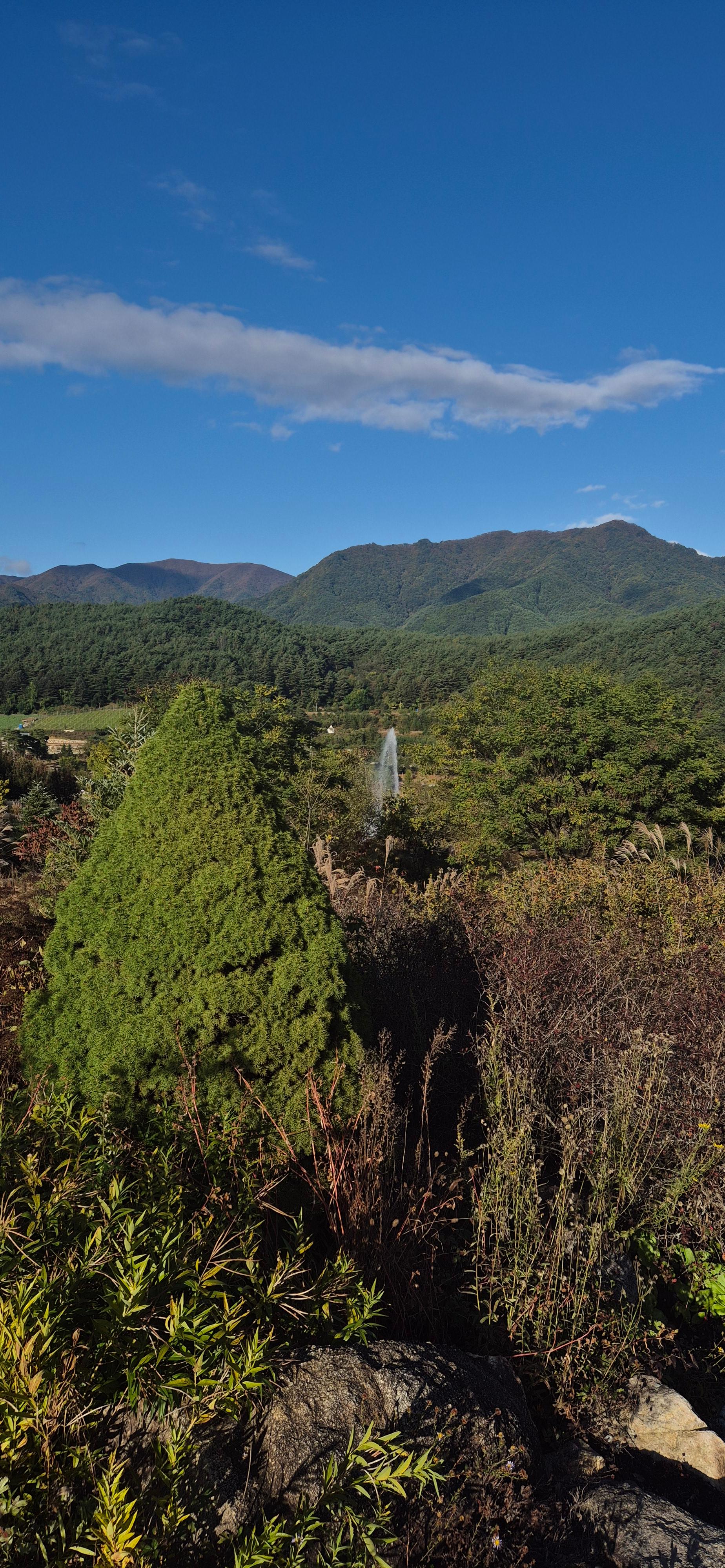 이 물줄기는 그저 관상용으로만 역활을 하는것이 아니고 이곳 주변의 고산 영역대에서 자라고 있는 생명들의 습도와 물을 공급해 주는 역활을 한다고.... 그래서 그런지 분수 주변에는 추운곳에서 자라는 구상나무들이 많이 식재되어 있다.