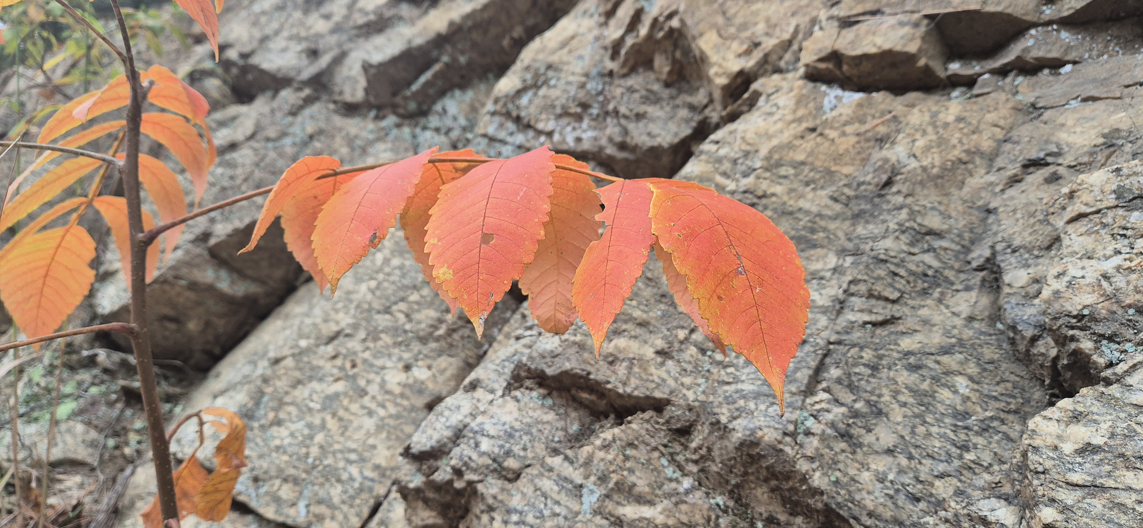 저 바위틈에 물들어 가고 있는 녀석도 생강나무.....