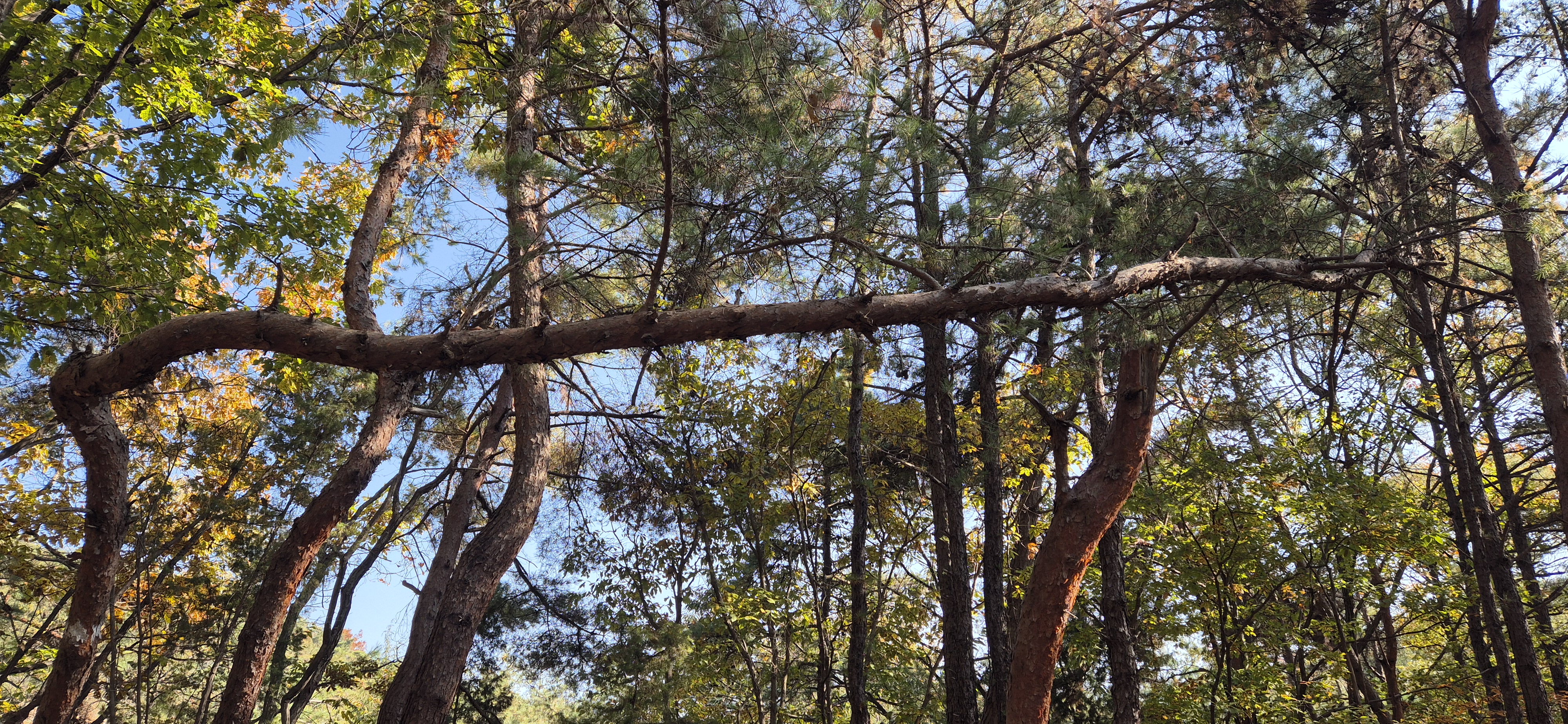 살아남기 위해 그늘을 피해 거의 수평으로 가지를 뻗었다.
