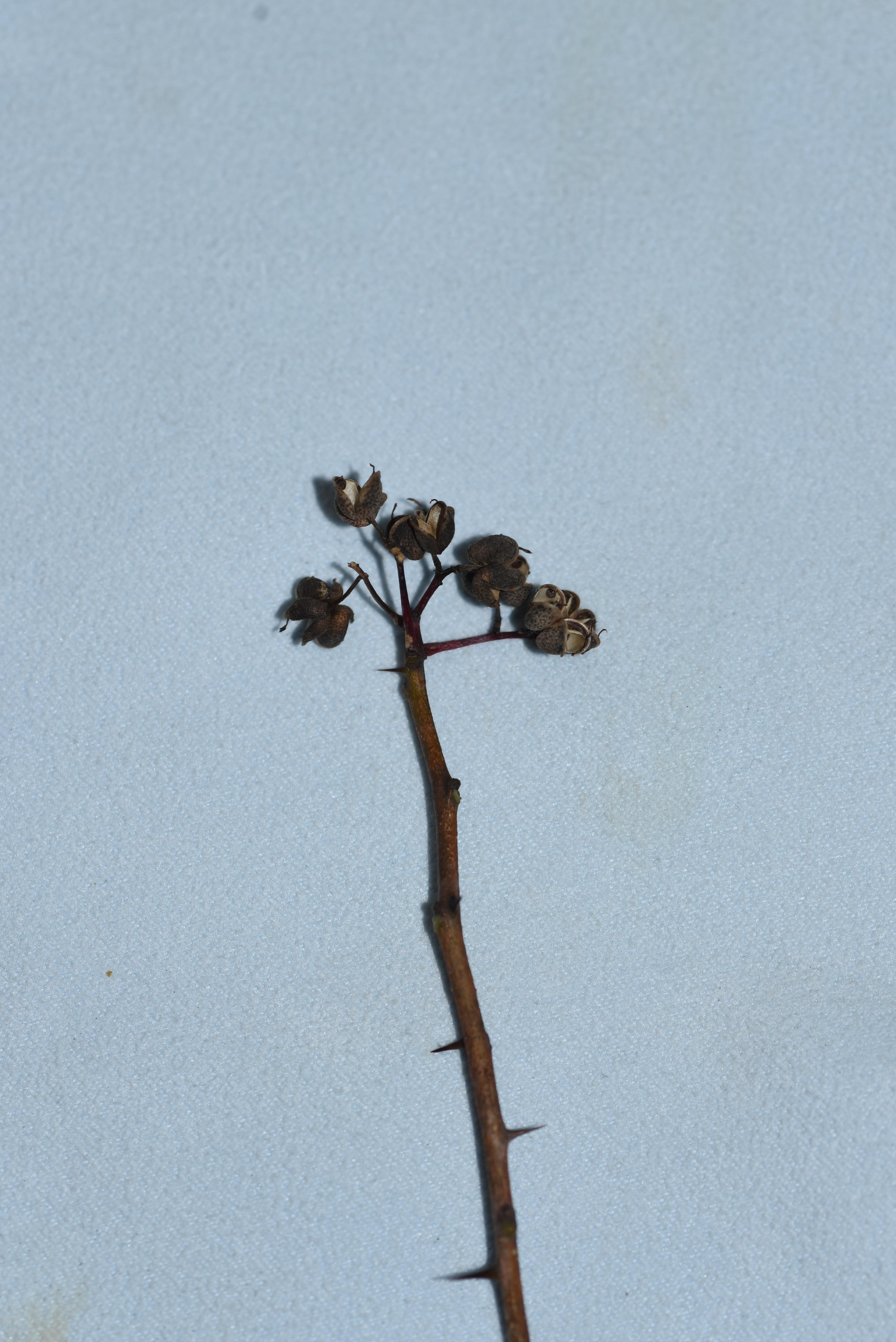 산초열매집과 어긋나기 가시(산초는 윗부분에 열매들이 모여 열리며 잎과 가시는 어긋나기) / 초피는 마주나기로 구분