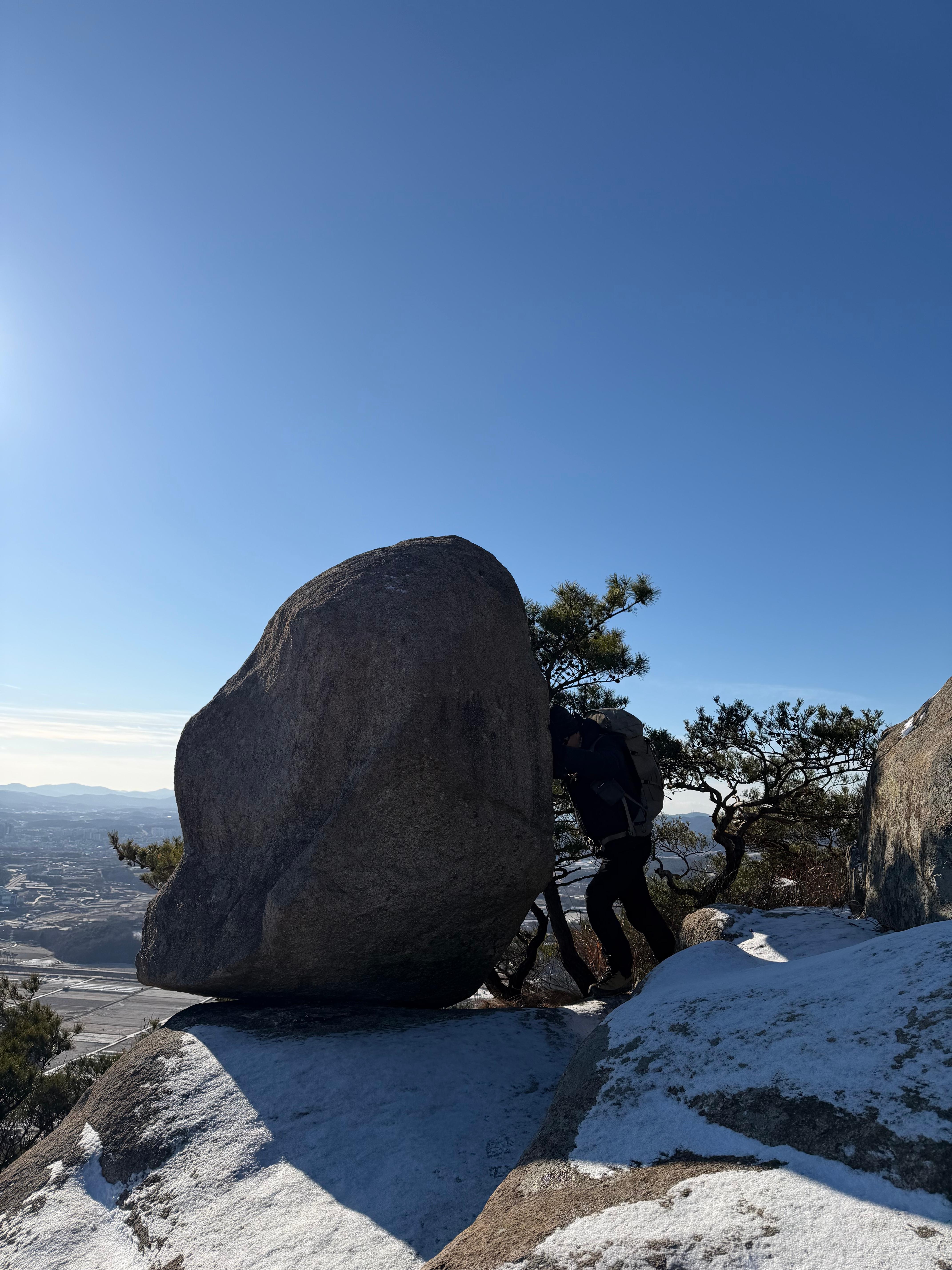 몇 번을 이곳을 지나쳤어도 이 바위한번 만저보지 않고 통과 했었는데 오늘은 바위도 만저보고 흔들리는지 밀어도 보기로 한다.